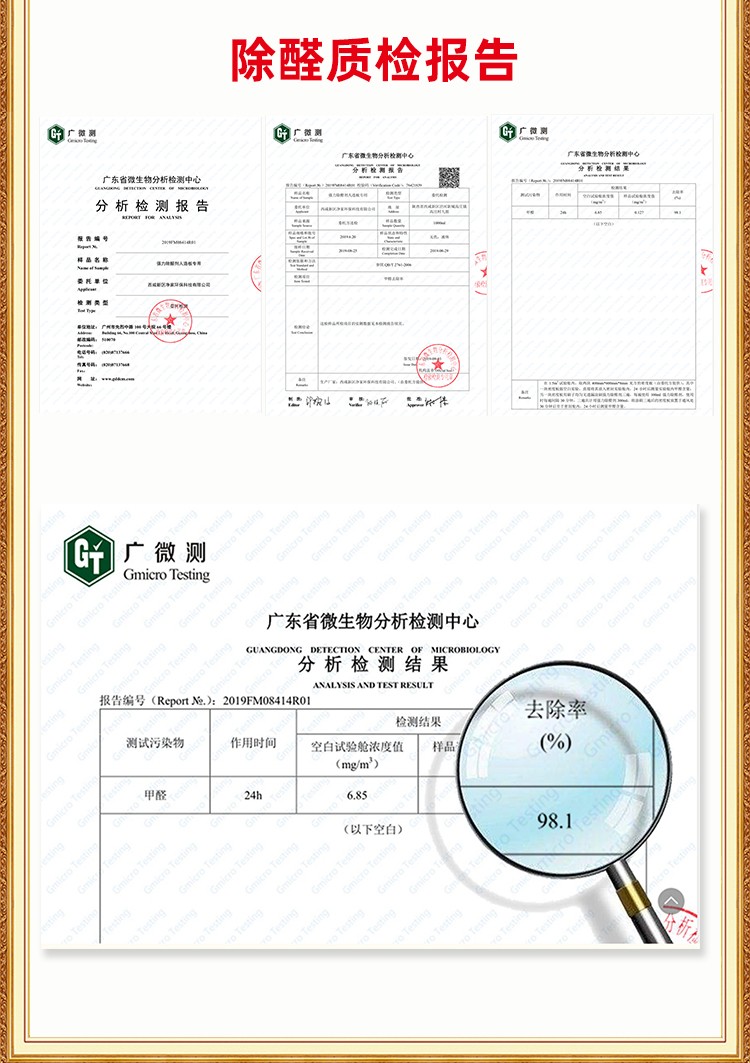 稳定性:无论有无光源,温度高低,本产品均有非常理想的效果,甲醛去除率。